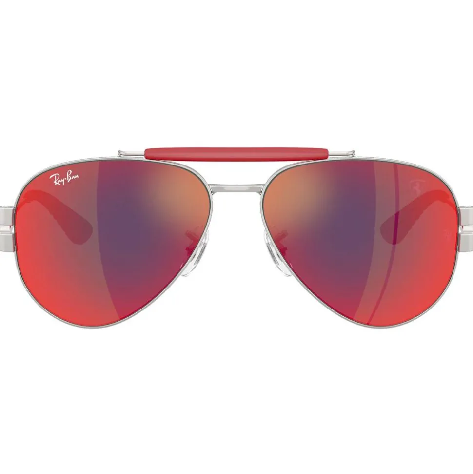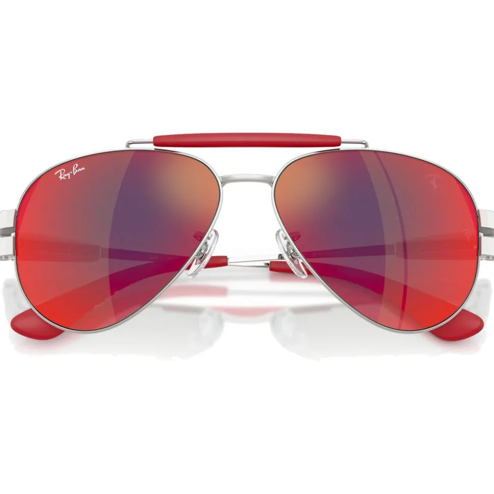 Les Ray-Ban RB3762M Scuderia Ferrari Polished Silver Red Yellow Mirror allient style, confort et protection optimale avec leur monture en métal et leur verre de haute qualité.