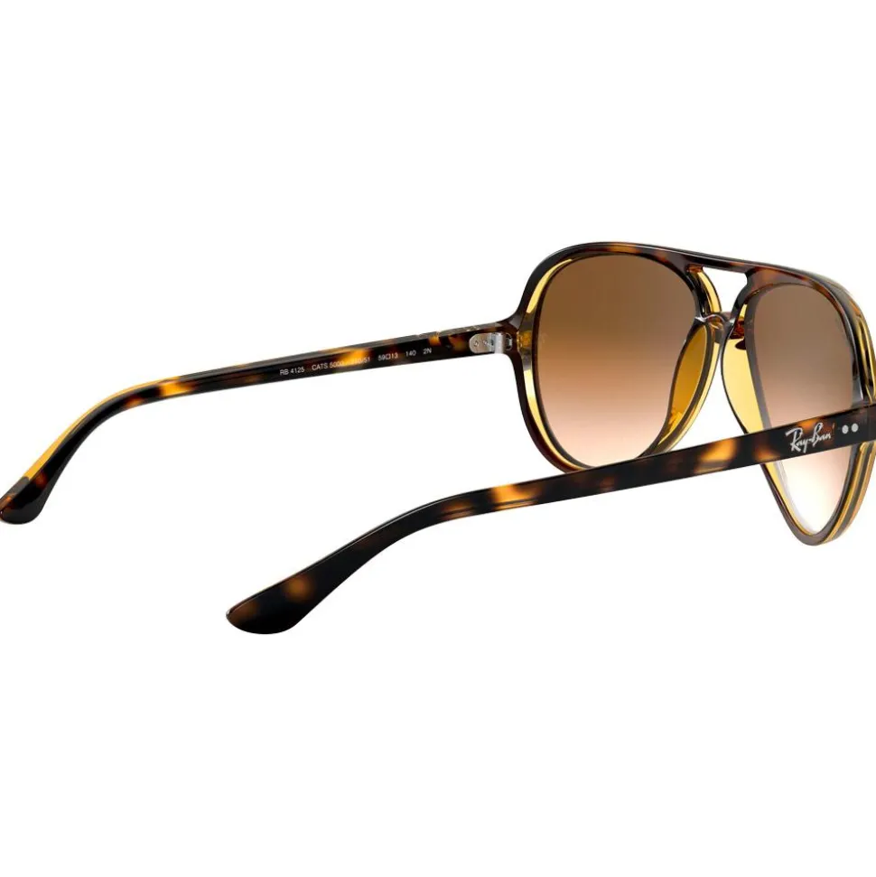 Les lunettes de soleil Ray-Ban RB4125 Cats 5000 Classic Polished Light Havana Gradient Light Brown allient style aviateur et protection solaire optimale avec leur verre minéral de haute qualité.