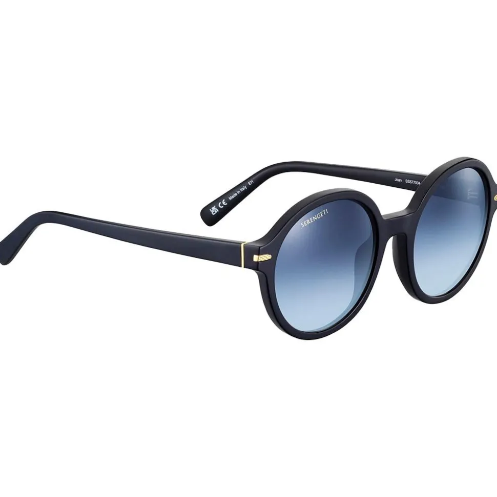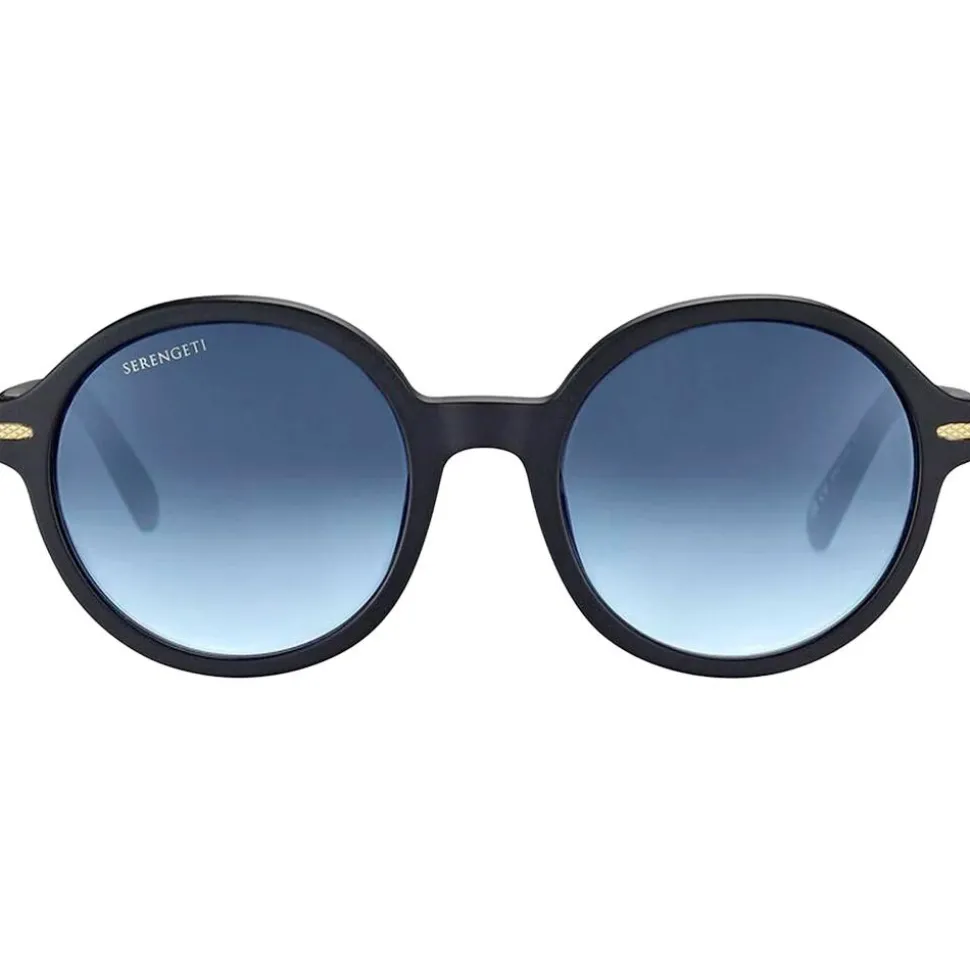 Les lunettes de soleil Serengeti Joan Matte Black Mineral Polarized Blue Gradient allient style classique et protection optimale avec leur monture ronde en acétate et leur verre polarisé.