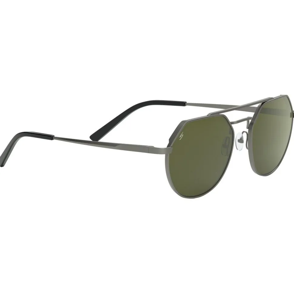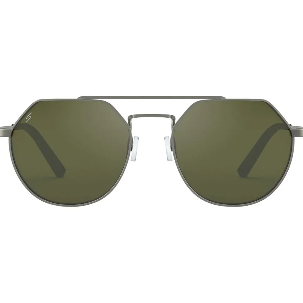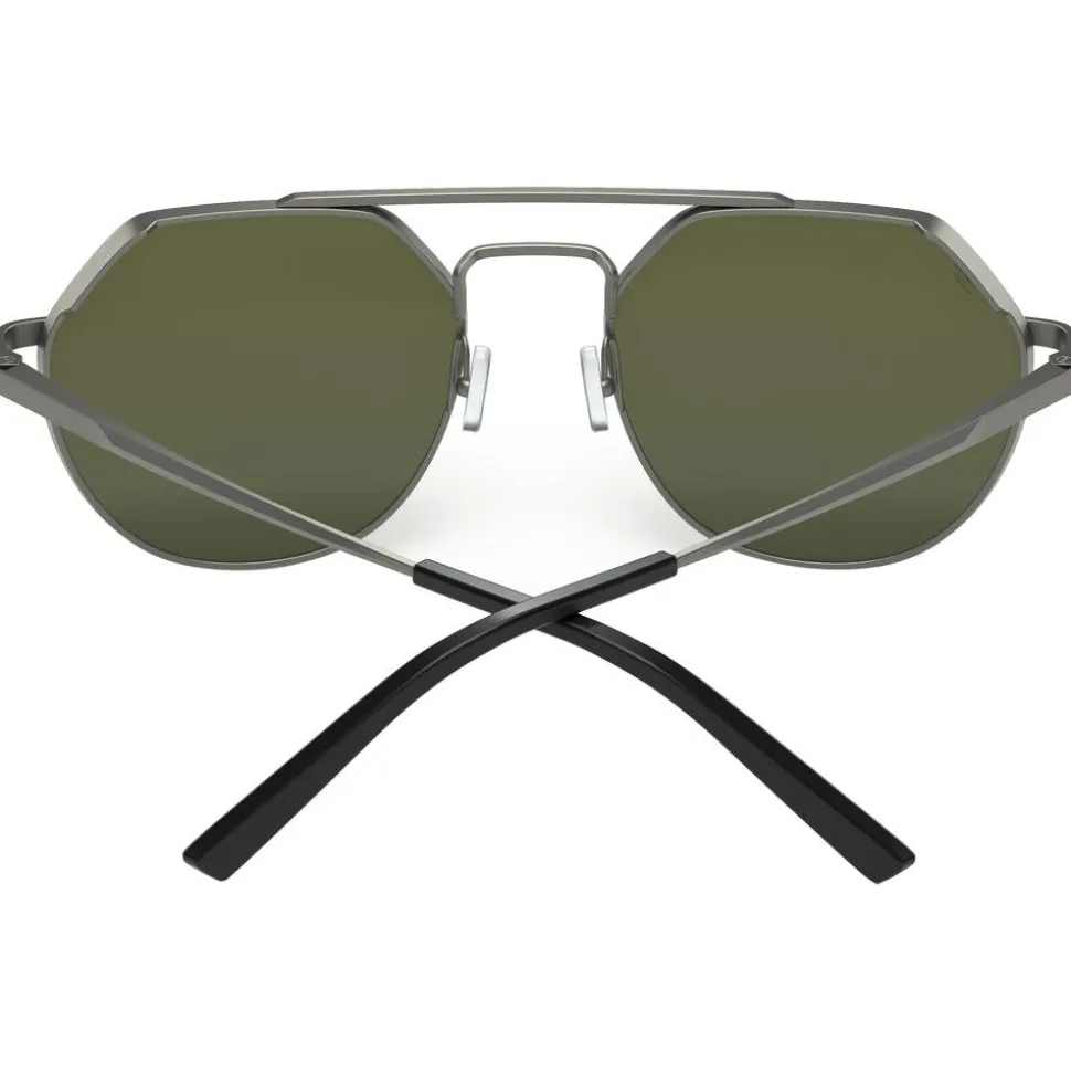 Cette conception tire parti d’une construction en métal plus épaisse pour le bord supérieur des verres et d’une double barre frontale. Sa conception a été étudiée dans les moindres détails, la marque est gravée sur le haut de la monture.