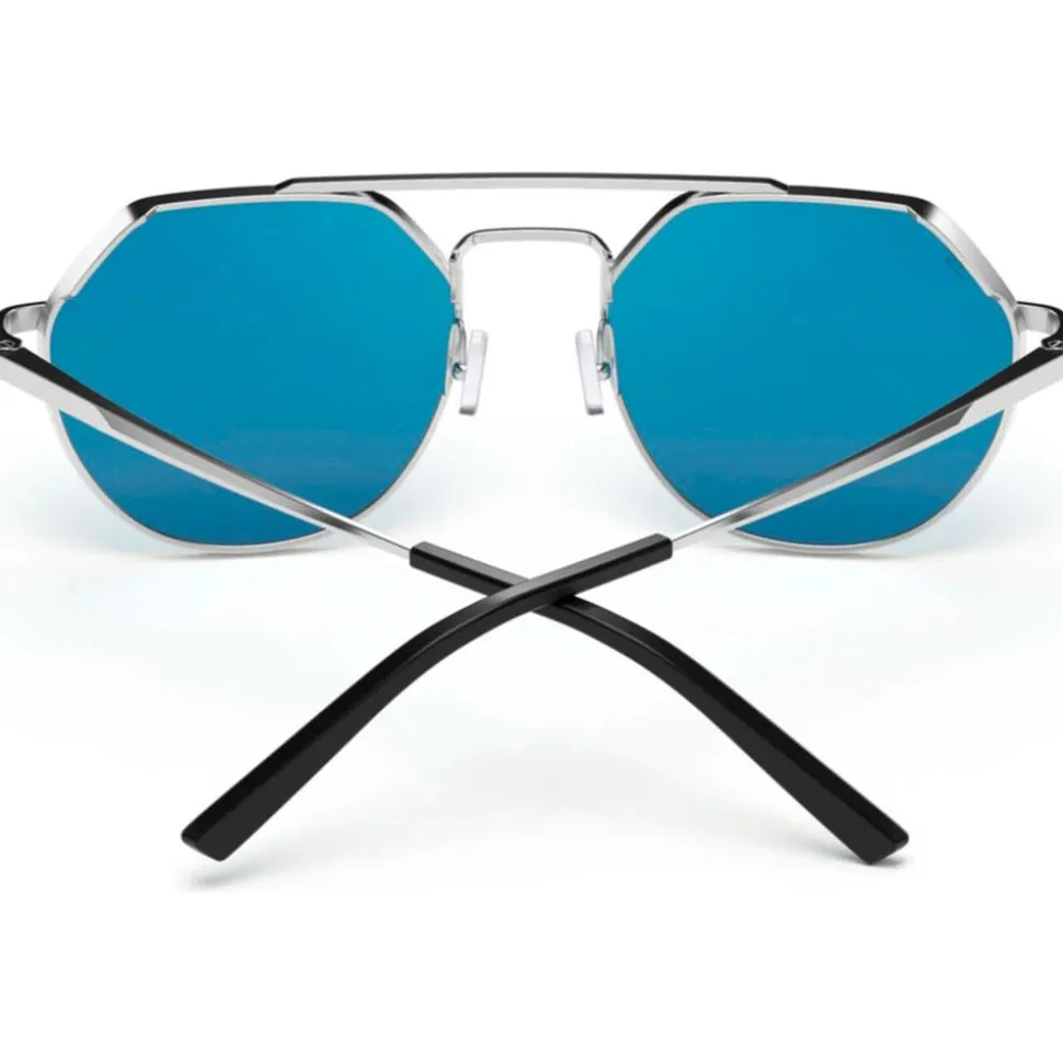 Cette conception tire parti d’une construction en métal plus épaisse pour le bord supérieur des verres et d’une double barre frontale. Sa conception a été étudiée dans les moindres détails, la marque est gravée sur le haut de la monture.