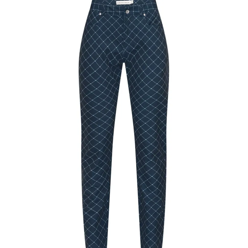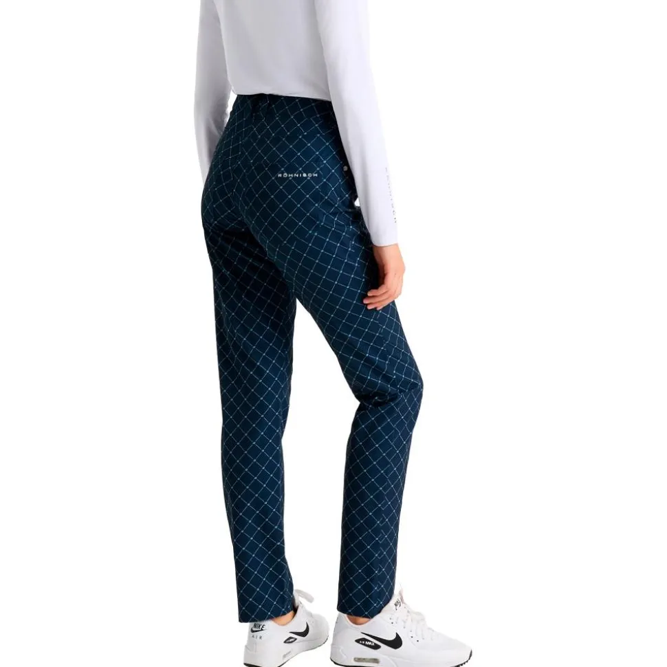 Le Röhnisch Chie Comfort Pants 30 Micro R Check Navy est un pantalon de golf en tissu léger, extensible et à séchage rapide, doté de poches pratiques.