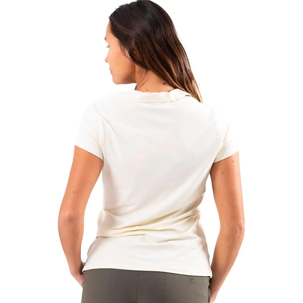 Le polo pour femme Chiberta Flory Ecru est un vêtement de golf élégant et fonctionnel, offrant confort, légèreté et un design sympa avec sa poche poitrine imprimée.
