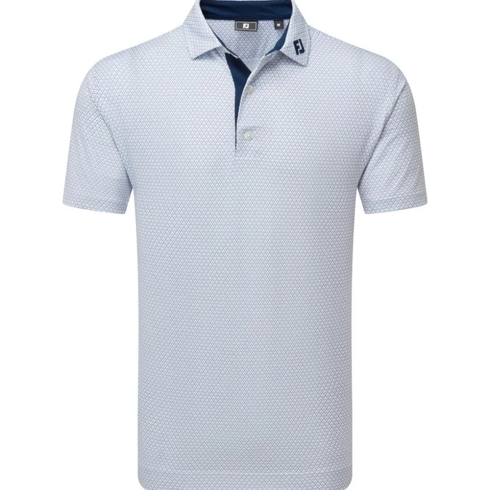 Grâce à sa matière légère et respirante, le polo Footjoy Deco Diamond Print White Navy assure confort optimal, évacuation efficace de l’humidité et tenue impeccable.