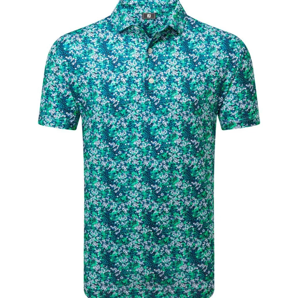 Le polo Garden Print Navy de Footjoy associe confort, technologie ProDry®, protection solaire UPF 30 et entretien facile pour accompagner chaque partie de golf.
