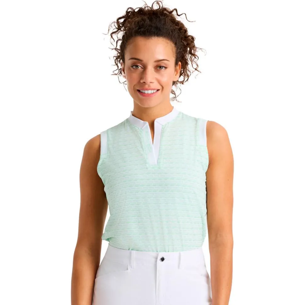 Le polo de golf Röhnisch Abby Sleeveless Top Monogram Green Ash offre confort et fraîcheur grâce à sa coupe sans manches et son tissu respirant et extensible.