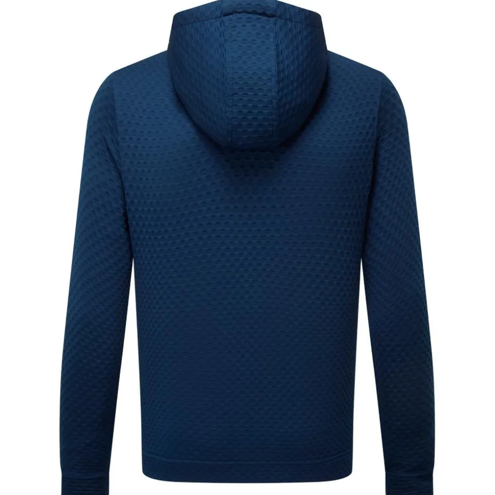 Parfait en mi-saison, le pull de golf Footjoy Textured Knit Navy protège efficacement du soleil tout en offrant une excellente gestion de l’humidité sur le parcours.