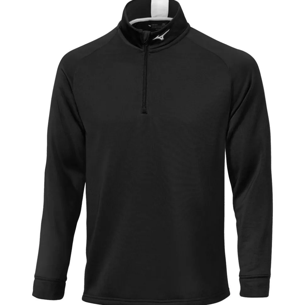 Sobriété de mise pour le très confortable pull de golf Mizuno Crested 1/4 Zip Black dont le col montant zippé permet de se protéger la gorge lorsque la fraîcheur se fait ressentir sur les fairways.