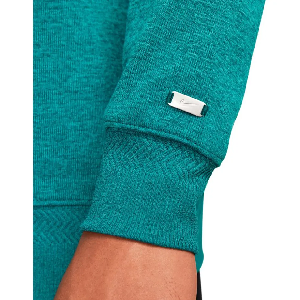 Le pull de golf Dri-Fit Player Half Zip Geode Teal Nebula de Nike offre confort et chaleur pour les parties de golf par temps frais.