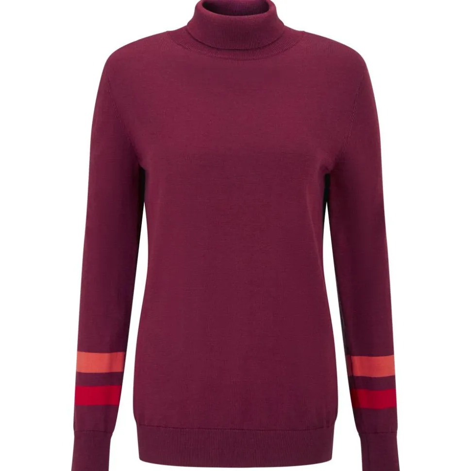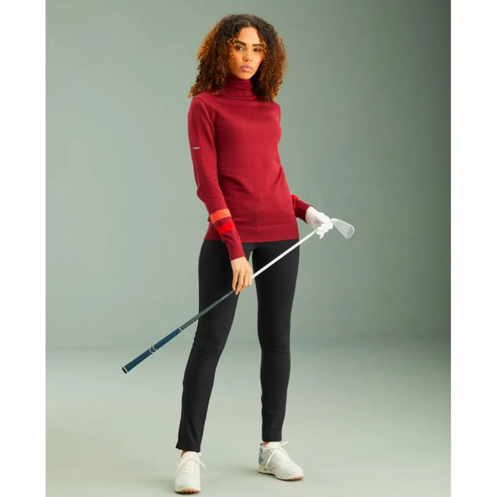 Le pull Jeanie Tibetan Red Multi de Ping, en laine mérinos et acrylique, allie élégance, confort et performance pour les golfeuses.