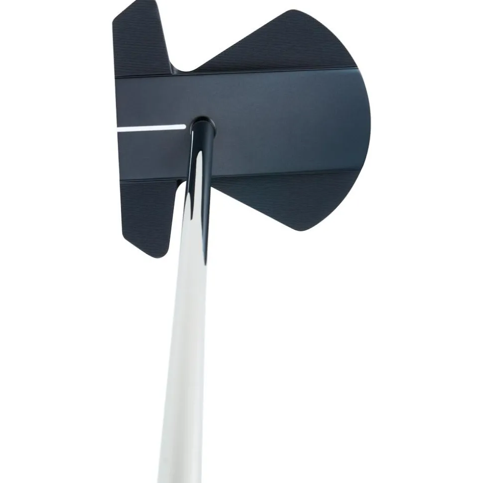Ce design centre le shaft sur le plan de centre de gravité du putter. Cela donne des putters qui reposent avec la pointe vers le haut, à l’opposé d’un putter traditionnel avec toe hang. Cette conception favorise une face carrée tout au long de la frappe.