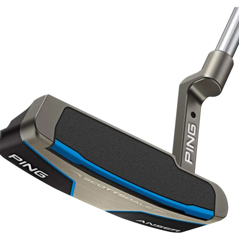 Le putter Ping Scottsdale Anser est un modèle lame avec un insert Pebax, un moment d’inertie élevé et une finition noire nickel contrastée.