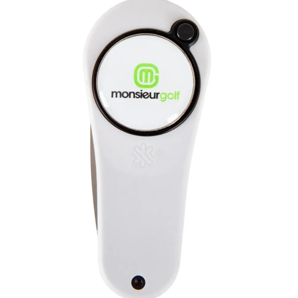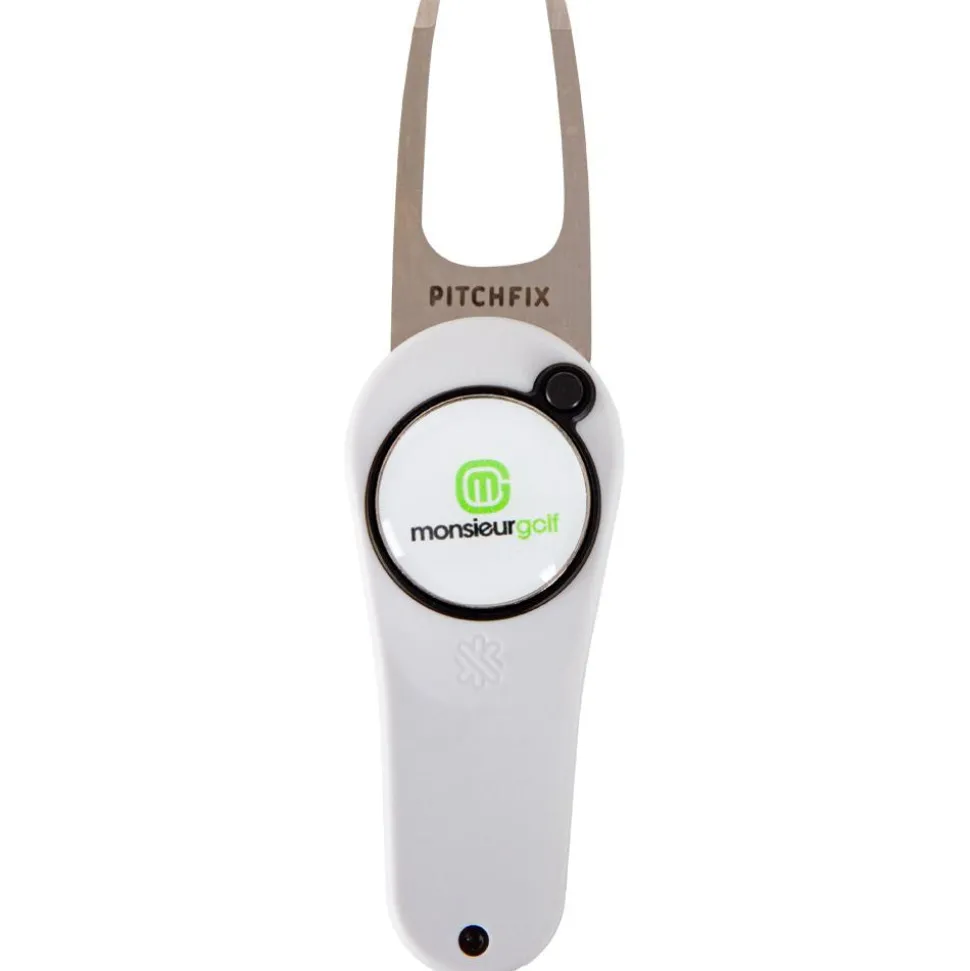 Solide et élégant, le releve-pitch Pitchfix The Original monsieurgolf White combine une poignée confortable à une lame rétractable facile à manipuler.