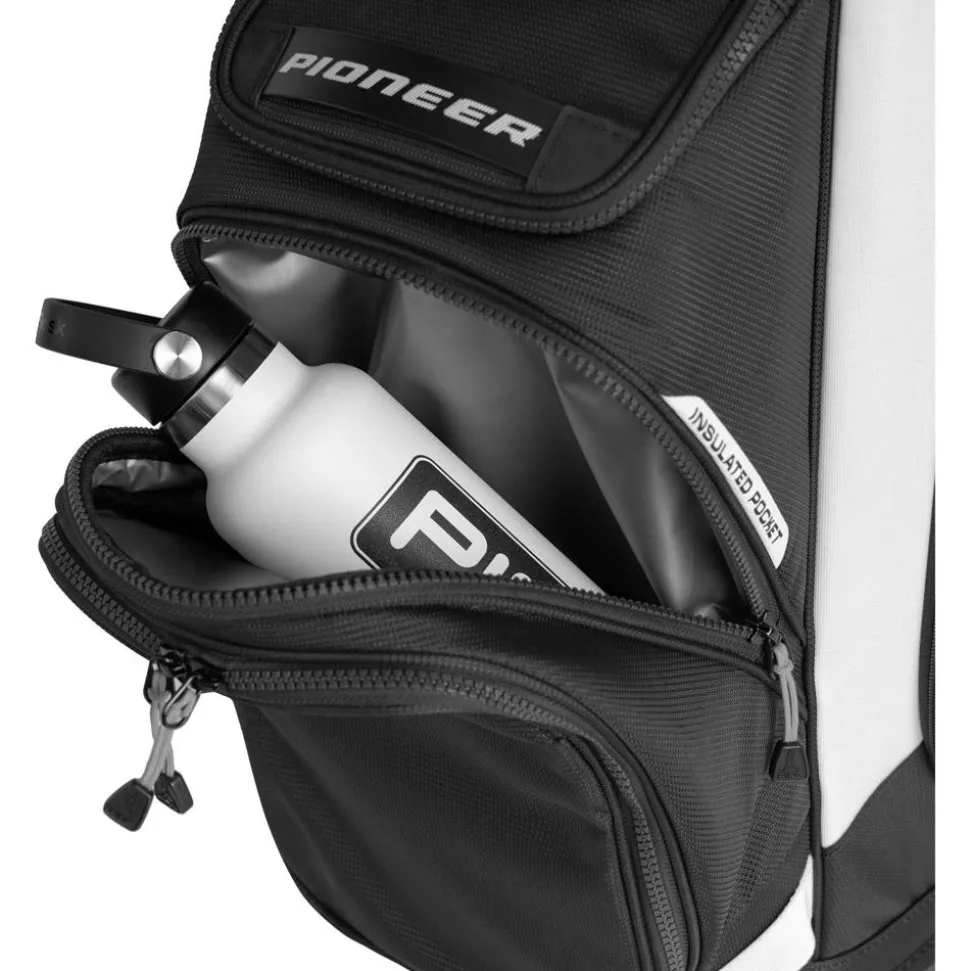Le sac chariot Ping Pioneer 244 est conçu pour offrir une organisation optimale et un transport pratique. Fabriqué en polyester traité pour résister à l’humidité, il comporte 15 compartiments bien pensés pour ranger vos clubs de manière efficace. Avec 14 poches, dont une isotherme pour garder vos boissons fraîches, et une boucle pour attacher une serviette, ce sac répond aux besoins des golfeurs tout au long de la journée. La poignée souple permet une prise en main confortable, facilitant le transport.