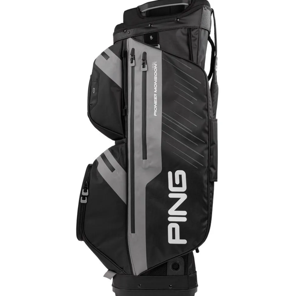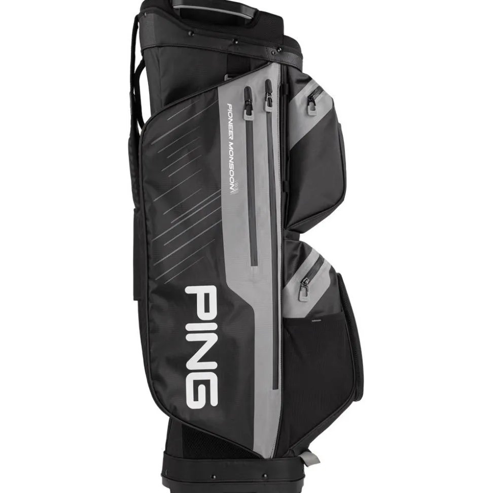 Le Pioneer Monsoon 231 de Ping est un sac de golf imperméable, astucieusement conçu avec 15 compartiments pour clubs, de nombreuses poches pour accessoires et un système d’attache pratique pour chariot.