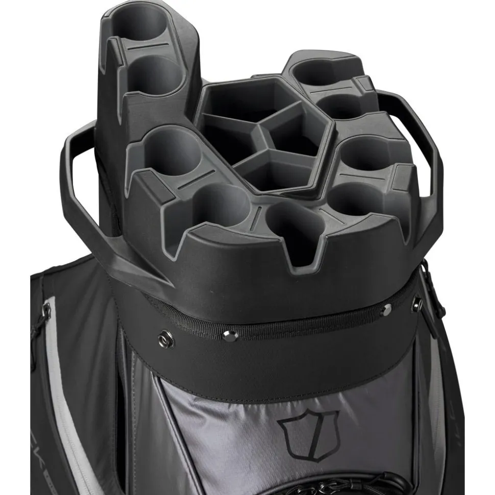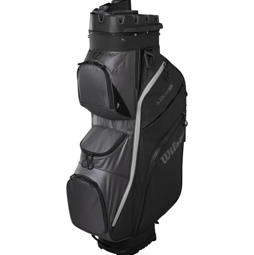Avec ses 14 compartiments individuels et ses 9 poches, le sac chariot de golf Wilson iLock Dry Cart Bag Black Grey permet d’organiser facilement son équipement, tout en le protégeant de la pluie.
