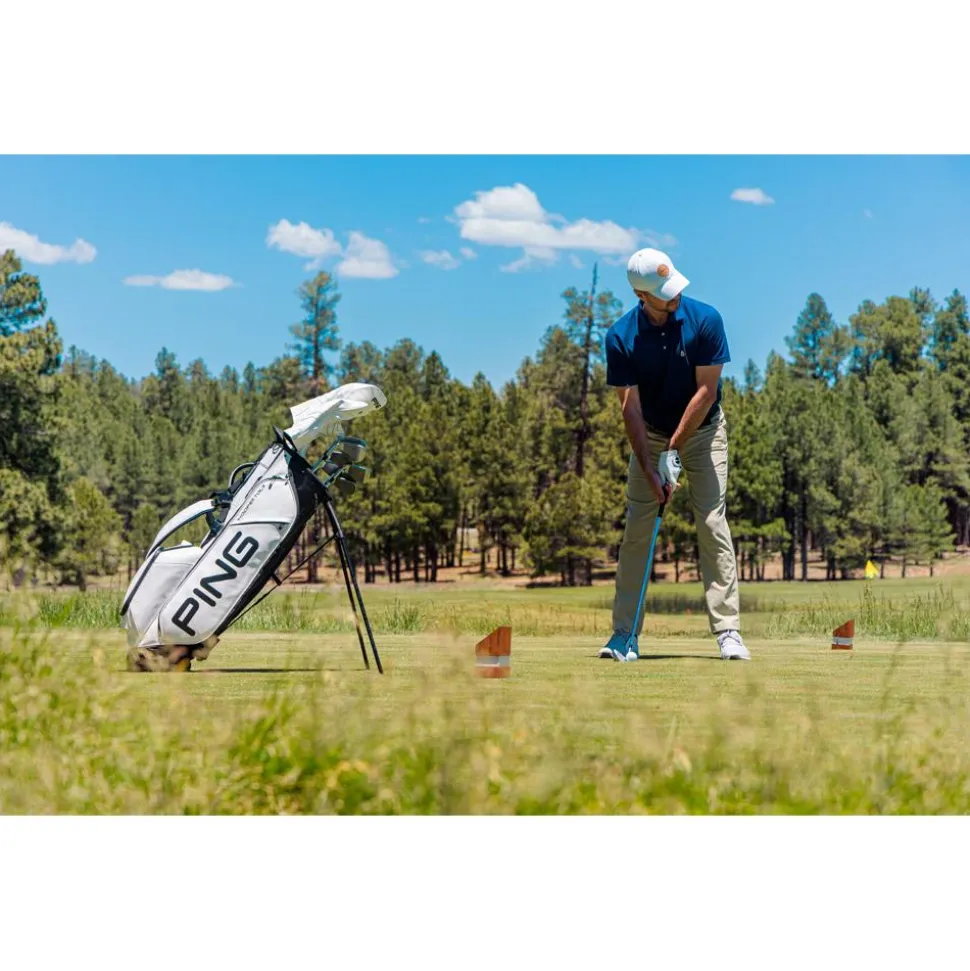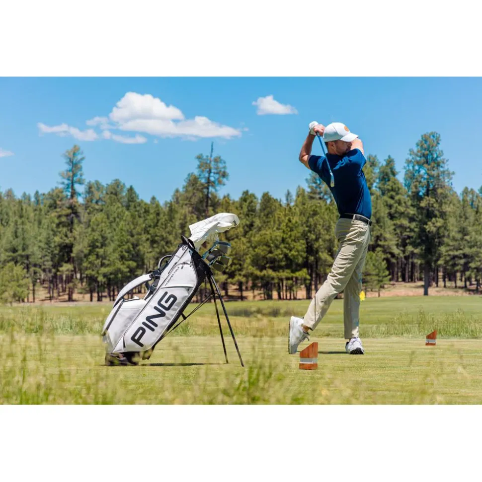 Le sac trépied Ping Hoofer Tour 244 est conçu pour offrir à la fois organisation et confort. Avec ses 5 compartiments, il permet de ranger vos clubs de manière ordonnée. Il comporte 9 poches, y compris une poche isotherme pour conserver vos boissons fraîches pendant votre partie. Les deux bretelles confortables assurent un port agréable, répartissant efficacement le poids pour un transport facilité. Ce sac pratique est idéal pour ceux qui recherchent un modèle léger et bien conçu, offrant à la fois fonctionnalité et praticité lors de chaque partie.