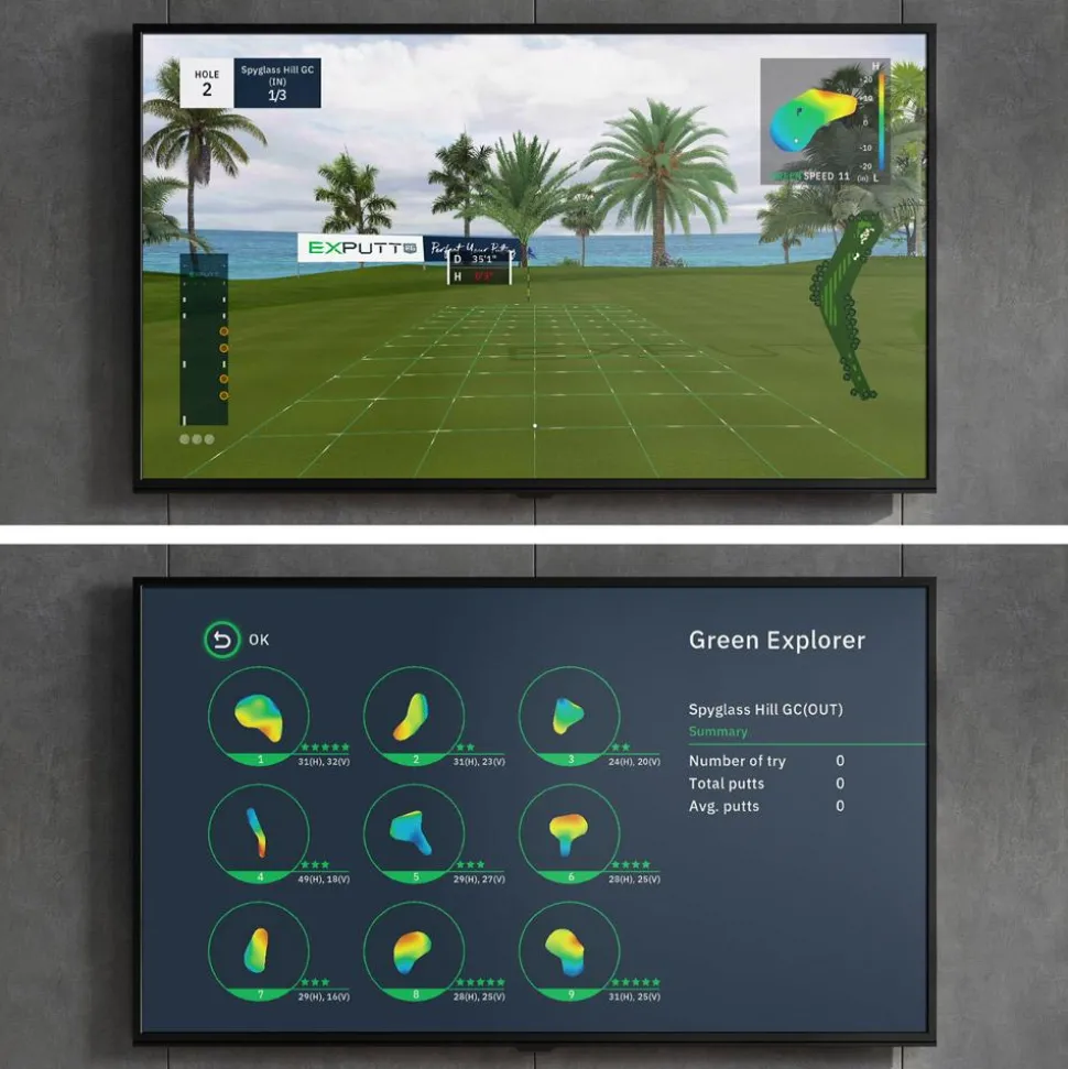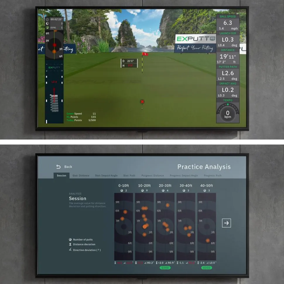 Donnez vie au green dans votre salon grâce à l’analyseur de swing Exputt RG EX 500D Simulator qui s’installe facilement, directement relié à un écran TV