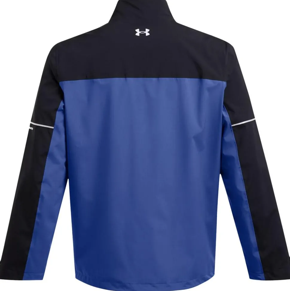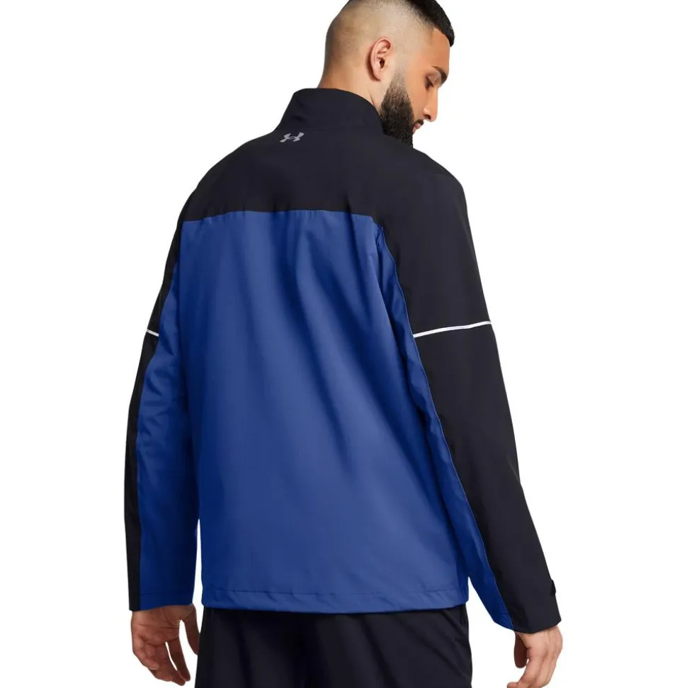 La Drive Rain Jacket Black Tech Blue Metallic Silver d’Under Armour est une veste de golf imperméable et respirante, idéale pour jouer confortablement sous la pluie.