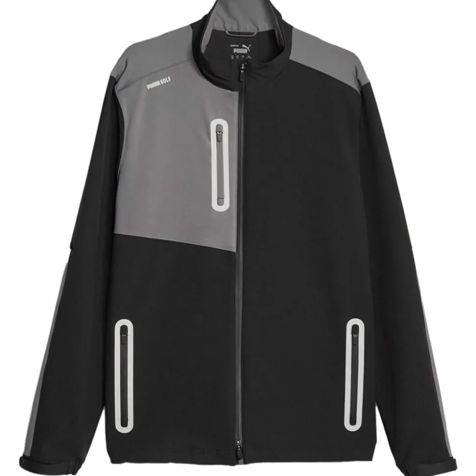 La veste de golf Puma Nordic DWR Black Slate Sky offre une protection optimale sur les parcours grâce à son traitement déperlant et sa technologie WindCell.
